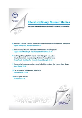 جامعه شناسی خانواده یکی از رشته های تخصصی علم جامعه شناسی است که موضوع آن بررسی نهادهای خانواده، خویشاوندی و ازدواج، تاریخ تکوین، تحول و دگرگونی های حاکم بر هر یک از این نهادها و همچنین ارتباط نهادهای مذکور با سایر نهادهای اجتماعی جامعه و مطالعه اثرگذاری نهاد خانواده و تأثیرپذیری آن از سایر نهادهای جامعه می باشد. در این مقاله سعی بر آن است که با استفاده از روش اسنادی و با رویکردی توصیفی-تحلیلی، مباحث اصلی جامعه شناسی خانواده در قرآن کریم بررسی شود. در اين نوشتار بیان ارز شها و اصول معنوی علم جامعه شناسی از منظر قرآن کریم مدّنظر است و نتایج به دست آمده حاکی از آن است که ابعاد مختلف و مباحث اصلی مطرح شده در جامعه شناسی خانواده در قرآن کریم به طور مبسوط بیان شده است. خانواده از دیدگاه قرآن کریم نهادی اخلاقی، معنوی، آسمانی و اجتماعی است که از جایگاه والایی در جامعه برخوردار می باشد و تأثیر شگرفی بر سایر اجزای نظام اجتماعی برجای می گذارد و به طور متقابل از آنها تأثیر می پذیرد.