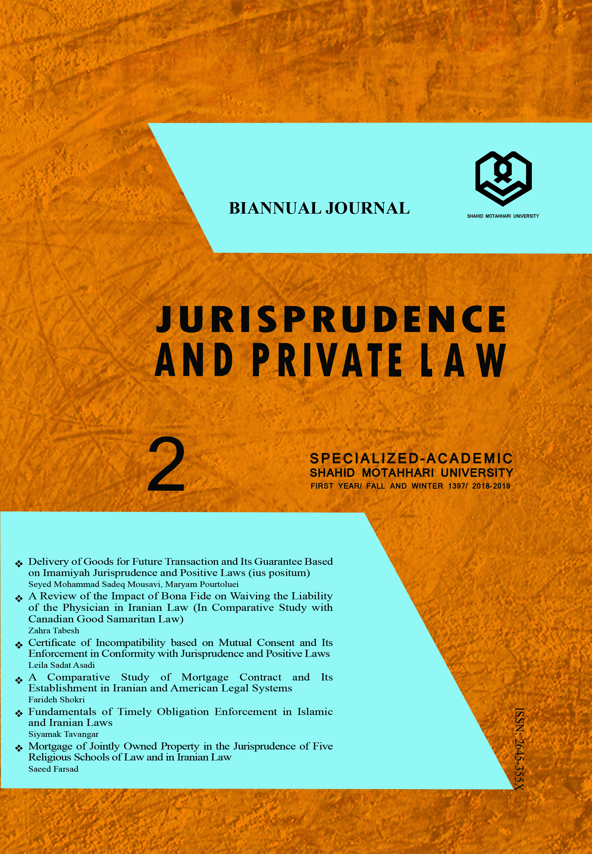 Abstract: Mortgage of jointly owned property (indivisum) is permissible according to Imamiyah, Maliki, Shafi’i, and Hanbali (except Hanafi) schools of Law because it is an instance of the rule of dominion. This is because conclusion of the mortgage contract does not mean possession of the jointly owned property. It is clear that submission of the jointly owned property to the mortgagee, in cases where it requires possession of the shares of the other partners, requires obtaining their consent. In cases where the mortgager submits the property to the mortgagee without the consent of the other partners, he shall be considered legally responsible for that. However, in cases where the submission of property means evacuation, the submission of the property does not mean possession of the shares of other partners, thus according to the jurisprudence of the above-said schools of law it does not need their consent for evacuation. This paper intends to study these issues in the jurisprudence of the abovementioned five schools of law and in the Iranian law.