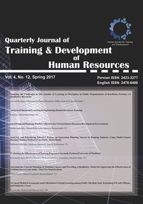 قنبری، سیروس؛ شمس مورکانی، غلامرضا؛ عارفی، محبوبه و زندی، خلیل (1396). آسیب¬شناسی انتقال یادگیری به محیط کار در سازمان¬های دولتی استان کردستان (یک پژوهش کیفی. فصلنامه آموزش و توسعه منابع انسانی، 4(12)، صص 27-1.