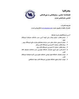 2. عزيزي، قاسم ؛ صمدي، زهرا، (1386)، تحليل الگوي سينوپتيکي سيل 28 مهرماه 1382 استان-هاي گيلان و مازندران، پژوهش¬هاي جغرافيايي، شماره 60، تابستان 1386، صص: 74-61؛