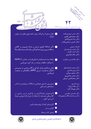 • "نقش بدرفتاری دوران کودکی و آلکسی تایمی در پیش¬بینی اختلال شخصیت مرزی (BPD): مطالعه ای در جمعیت غیر بالینی "